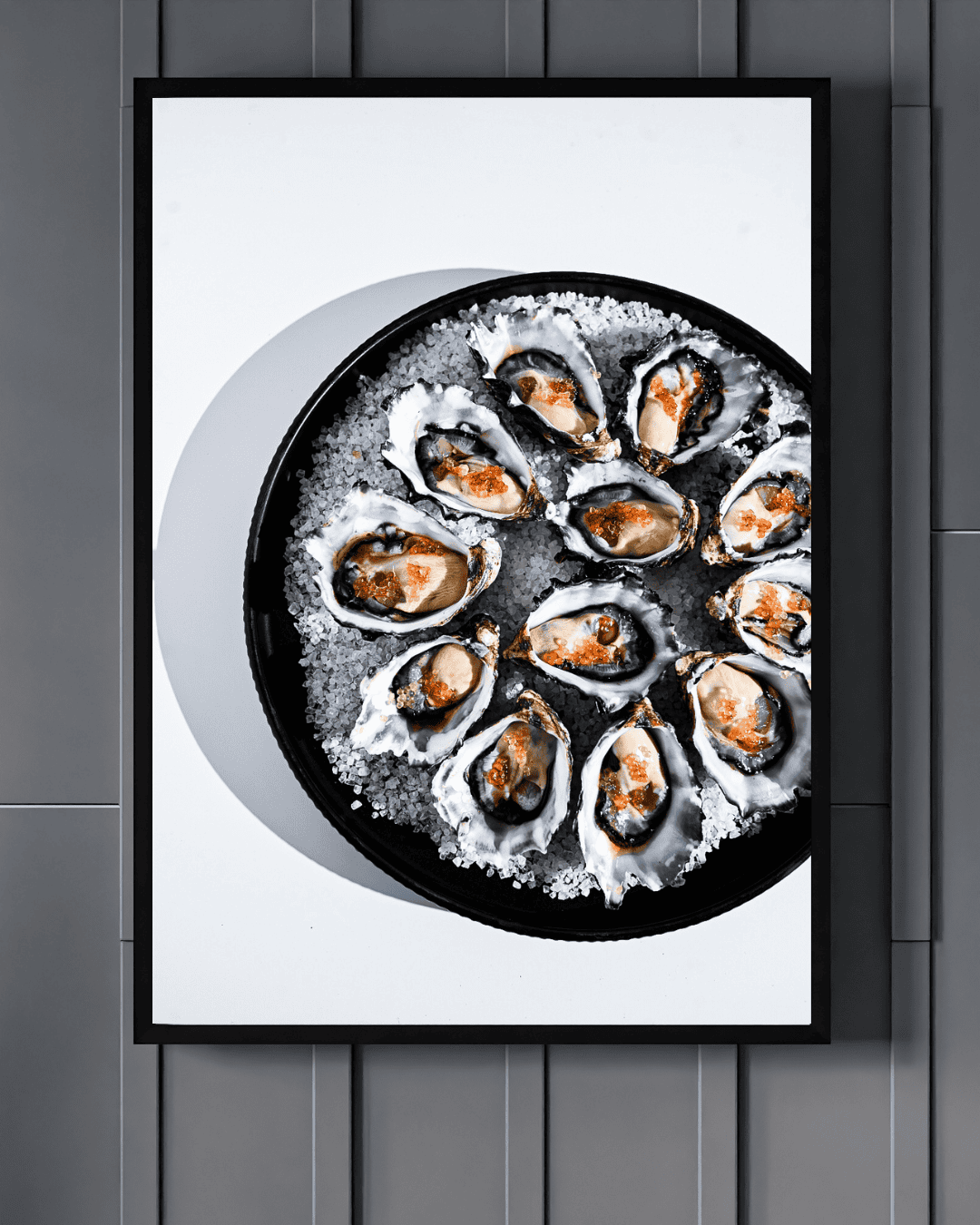 A beautiful fine art print featuring a plate of Sydney Rock Oysters.